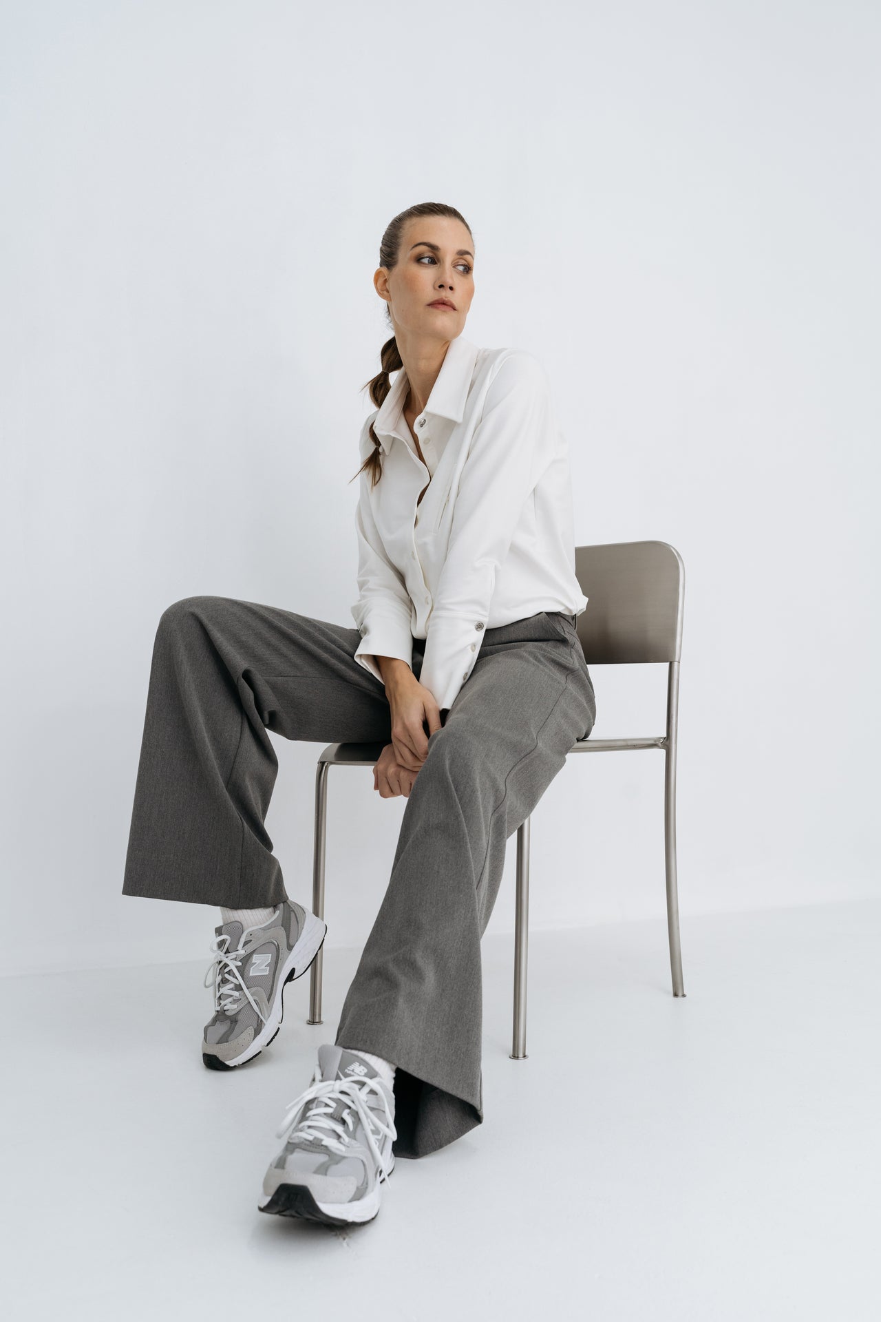 De Hally in Grey Melange is een stijlvolle en tijdloze broek uit de FALL 2025 collectie. De zilveren details geven de broek een moderne en verfijnde uitstraling, perfect voor zowel casual als chique outfits.