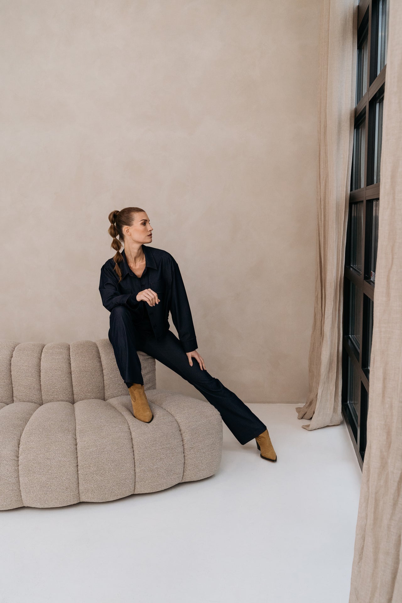 De Harper Broek in Denim Look is een veelzijdig en stijlvol item uit de FALL 2025 collectie. De light gold details geven de broek een luxe uitstraling, waardoor hij perfect is voor zowel casual als chique looks.