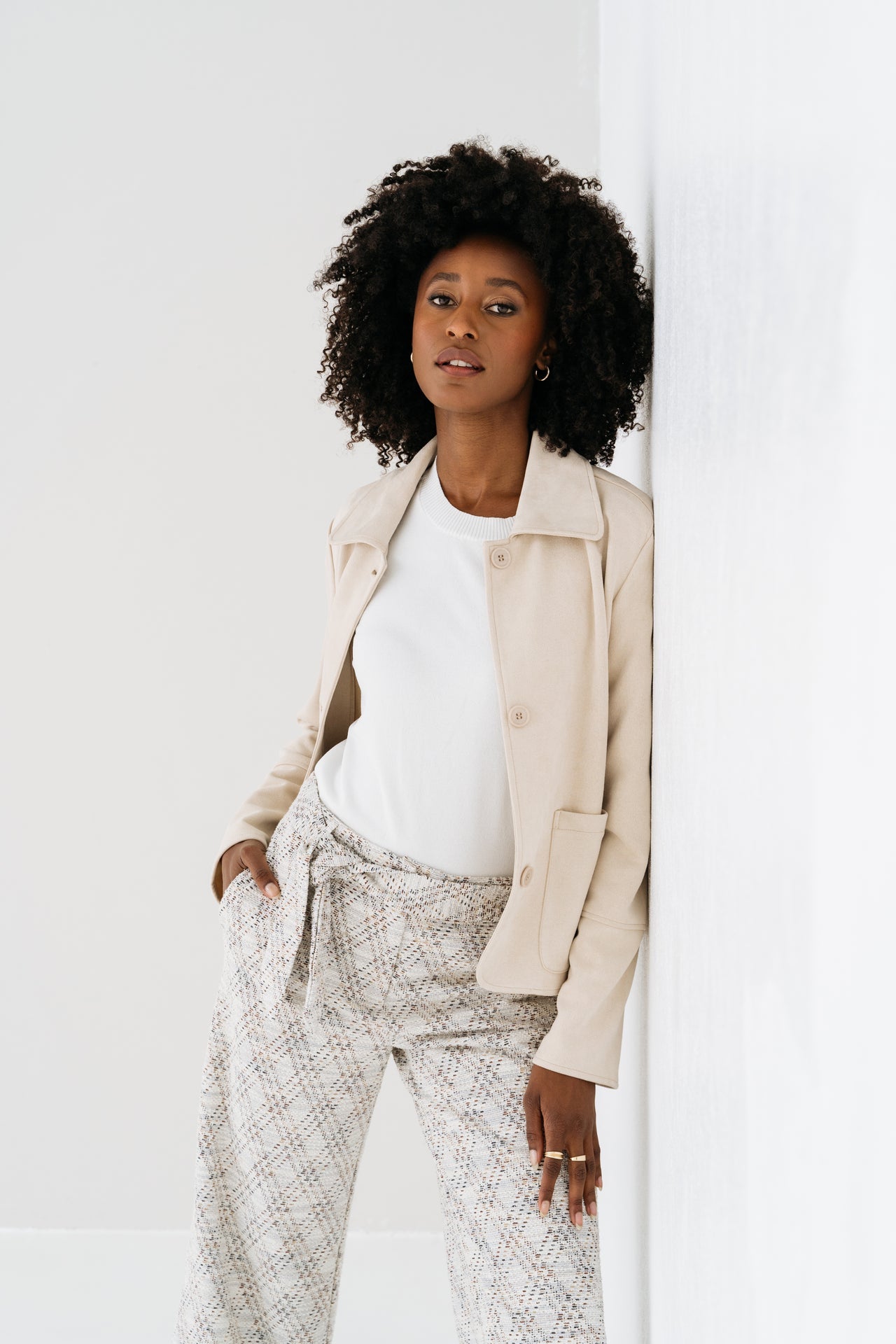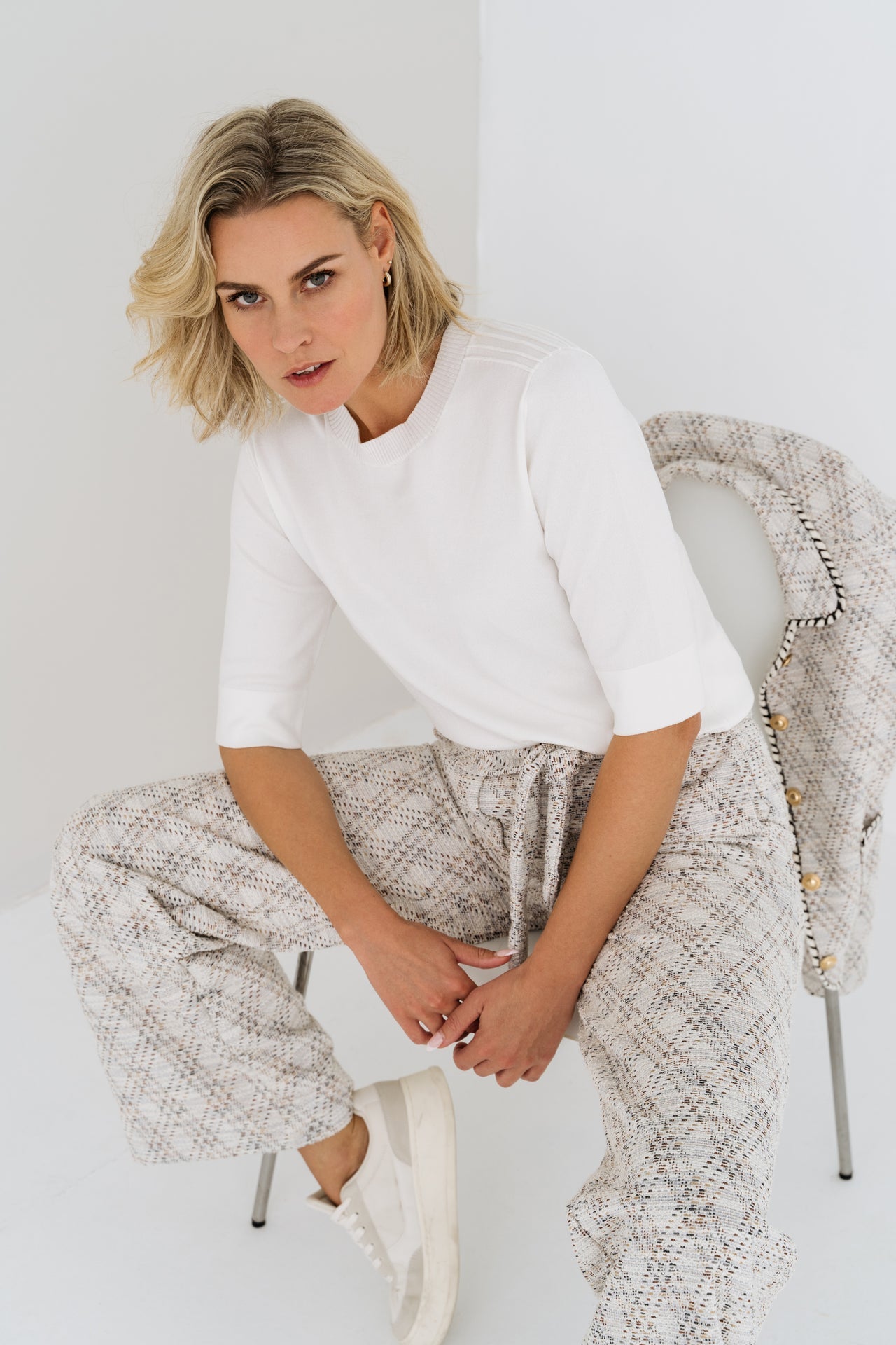 De Kian broek, gemaakt van luxe jacquard stof, heeft een verfijnde uitstraling en biedt optimaal comfort. De bijpassende riem in dezelfde stof maakt de look compleet.