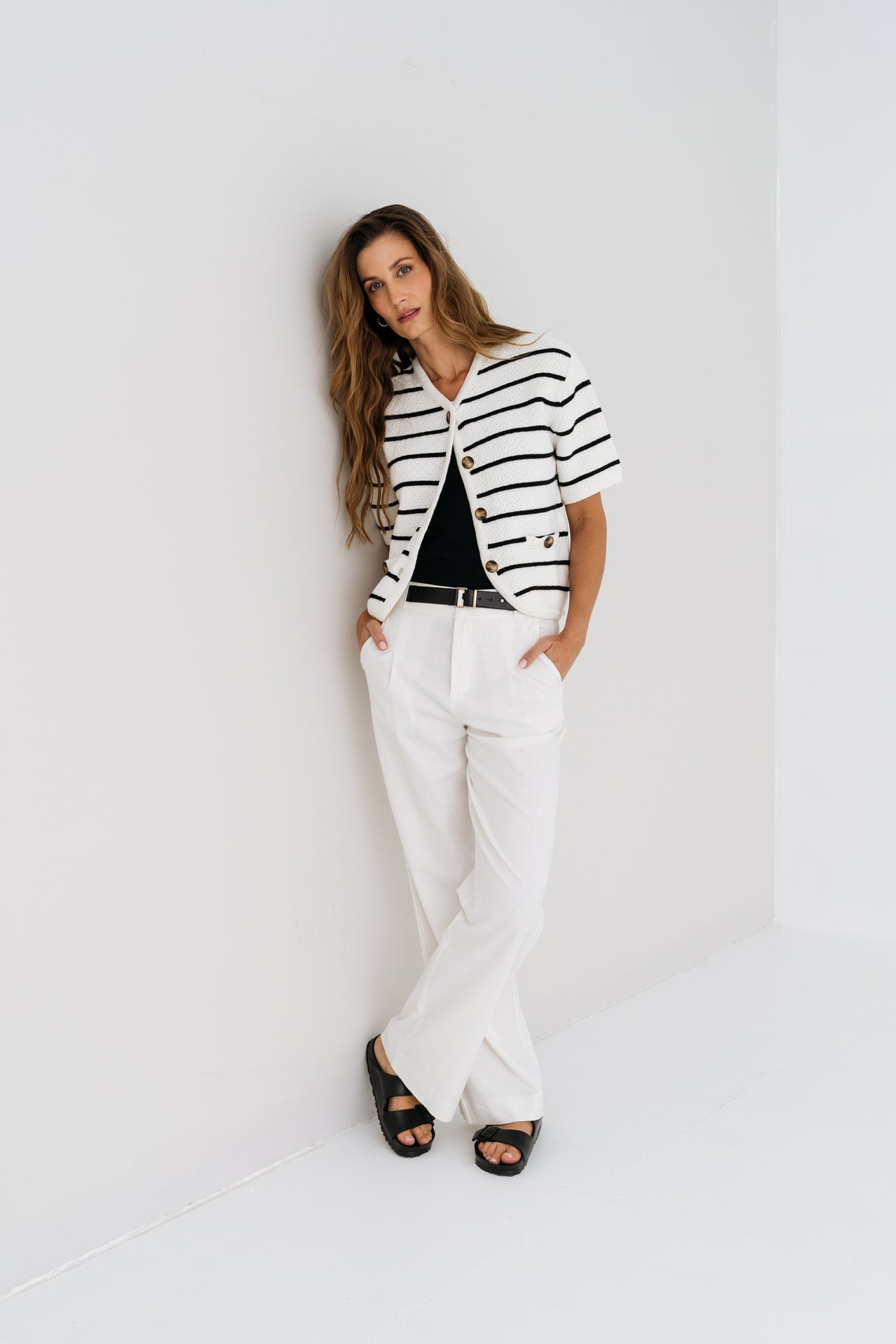 De Nemm wijde uitlopende broek heeft een unieke leren sluiting aan de voorkant, waardoor hij een eigentijdse en edgy uitstraling krijgt.