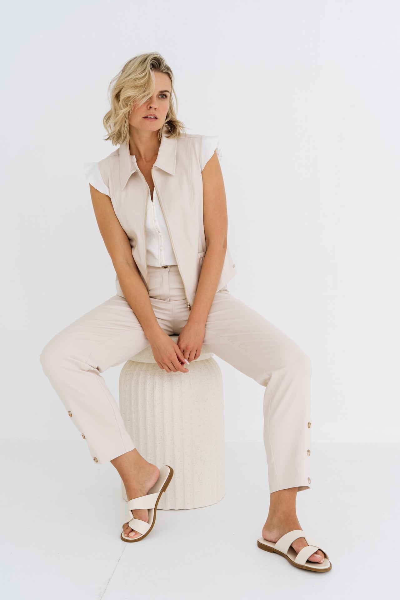 De Nice gilet is een veelzijdig mouwloos vest met een ritssluiting en praktische zakken aan de voorkant.