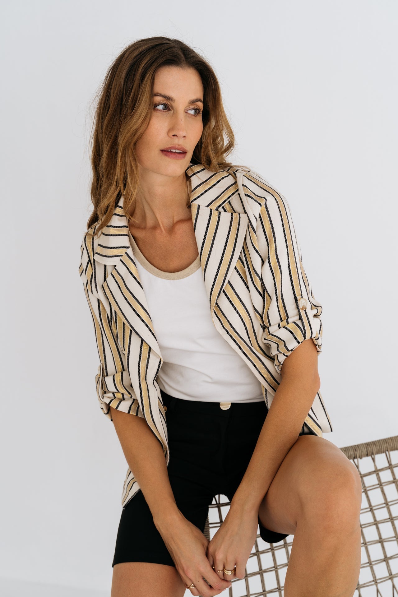 De Nooske half lange blazer is een veelzijdig jasje met nonchalante, opgerolde mouwen.