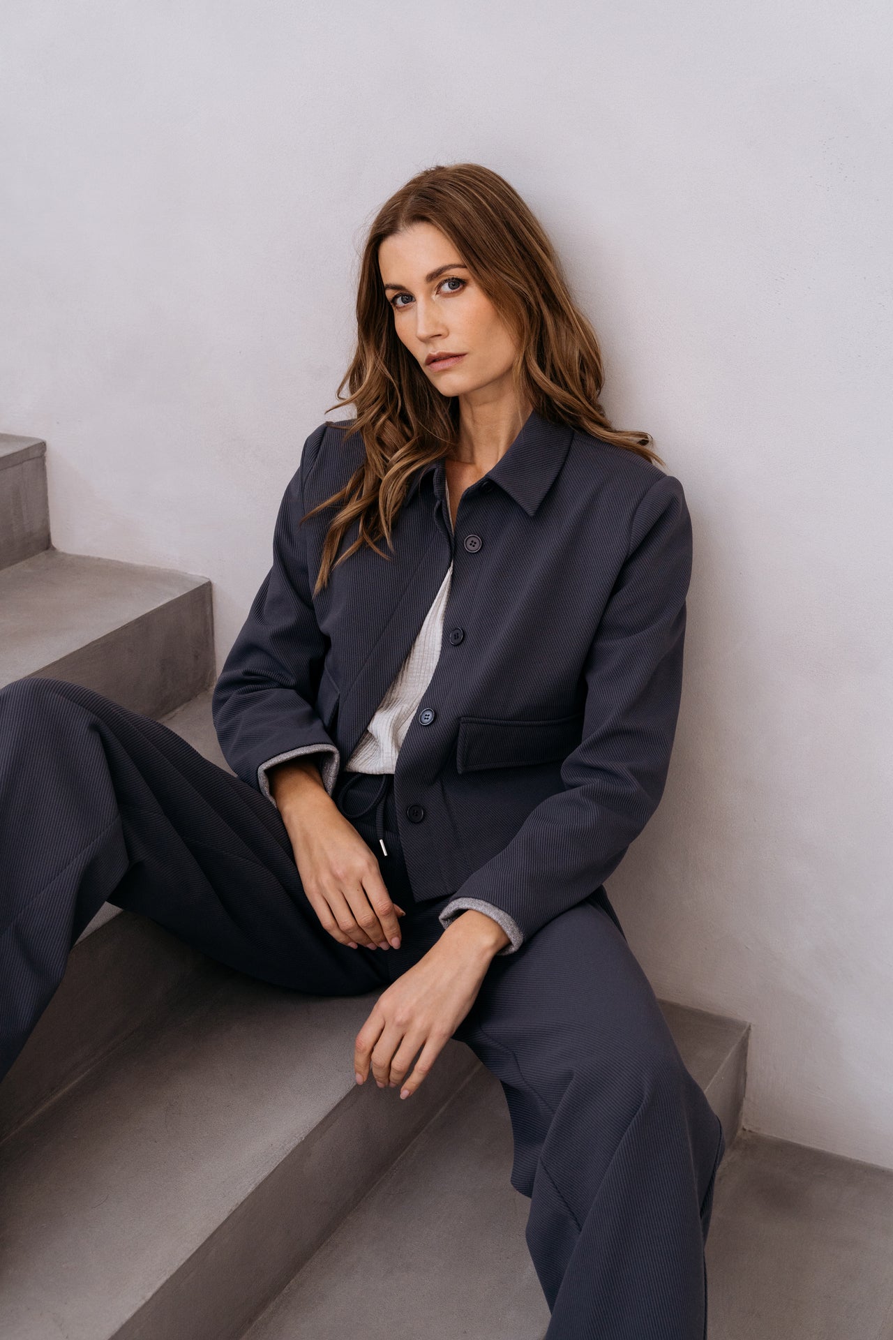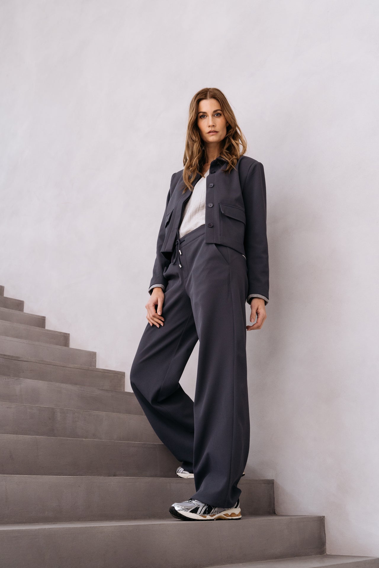 Penna, een elegante Zizo blazer in de kleur antracite met zilveren tricot manchetten, combineert verfijning met een sportieve touch. De hoogwaardige stof en de subtiele details maken deze blazer een veelzijdig stuk voor zowel formele als casual outfits. Perfect voor een moderne en chique uitstraling.