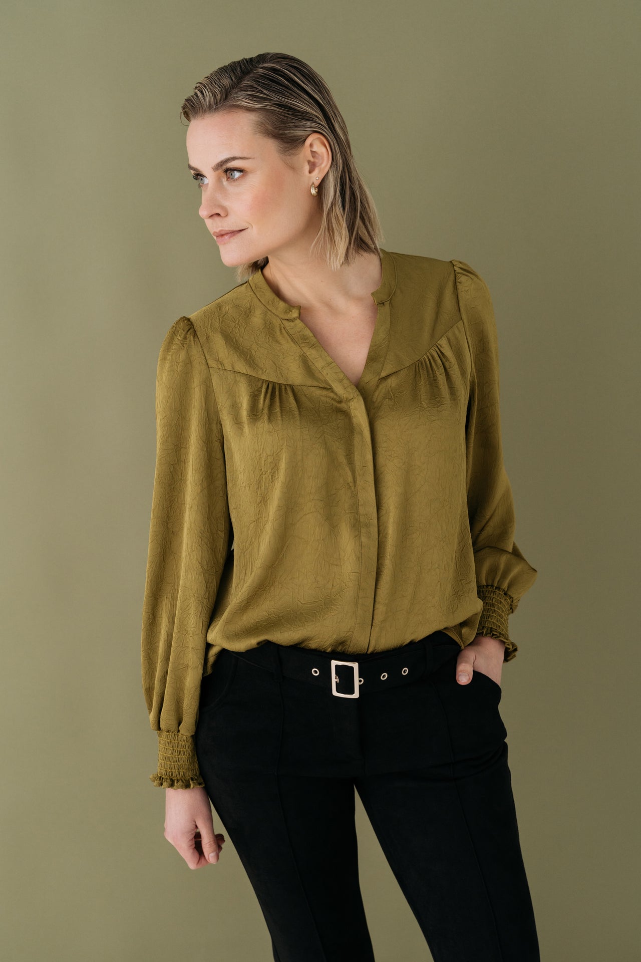 De Pia Broek in de kleuren Black, Navy, en Apple Cinnamon is een veelzijdig en stijlvol item uit de FALL 2025 collectie. De light gold details geven de broek een luxe en verfijnde uitstraling, perfect voor zowel casual als chique looks.