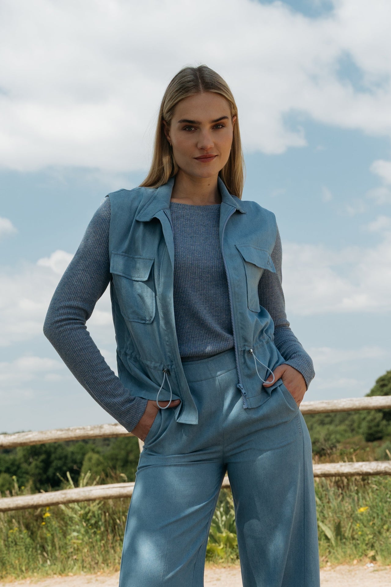 Het Steff gilet heeft een opstaande kraag en klepzakken aan de voorkant. De taille is verstelbaar met een trekkoord voor een vrouwelijk silhouet. Een modern item dat moeiteloos combineert met verschillende looks.